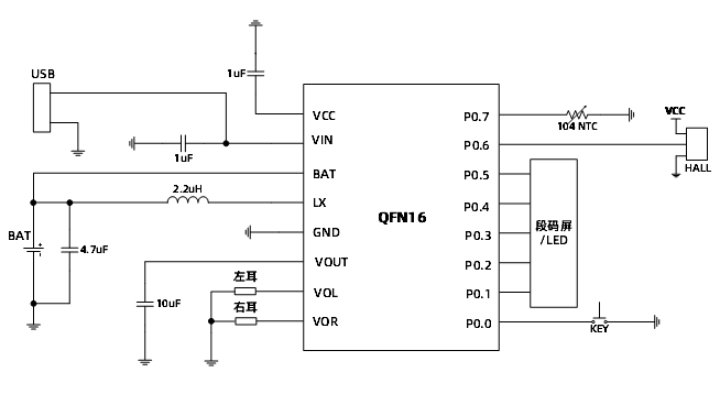 SY8839是專門為TWS耳機充電倉設(shè)計的全集成SoC芯片。SY8837/8/9內(nèi)部集成了兼容8051指令集的CPU,512字節(jié)RAM, 12k字節(jié)OTP程序存儲區(qū),多通道10位ADC,9個GPIO,一個線性充電模塊,一個Boost升壓模塊、兩個獨立放電控制MOS管和耳機雙向通訊模塊。SY8839芯片VIN管腳支持過壓保護,最高耐壓可達35V。