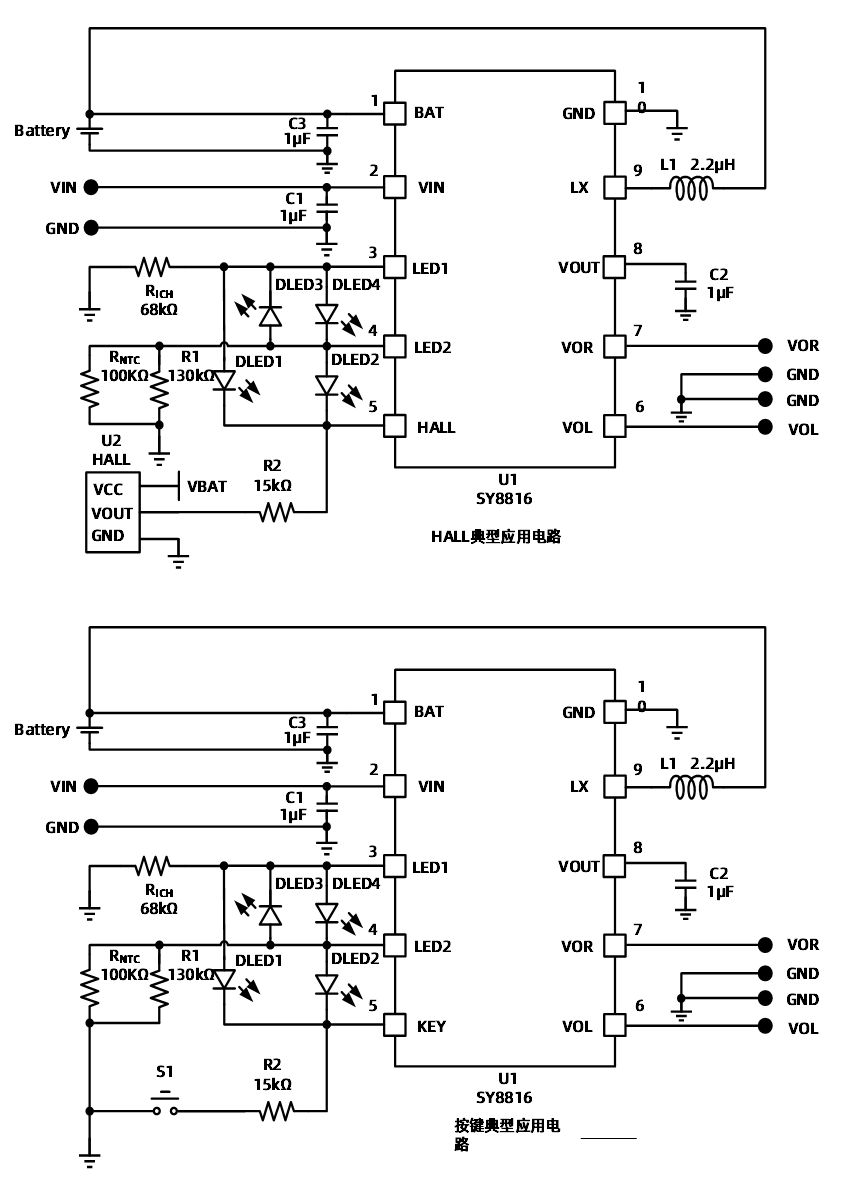 支持自動(dòng)識(shí)別按鍵/HALL功能,當(dāng)識(shí)別為按鍵功能時(shí),短按開啟放電,長按關(guān)閉放電,當(dāng)識(shí)別為HALL時(shí),可用HALL芯片直接驅(qū)動(dòng)芯片