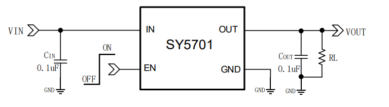 SY5701是一顆小型,低RON,超低功耗,快速開(kāi)啟的load switch,最大支持1A電流。低于20nA的工作電流可支持應(yīng)用在智能手表、手環(huán)等功耗敏感的設(shè)備上。SY5701包含1個(gè)60mΩ(典型應(yīng)用)P溝道 MOSFET,可在1.1V至5.5V的輸入電壓下工作??赏ㄟ^(guò)EN腳控制開(kāi)關(guān),1V的較低控制電壓即可開(kāi)啟開(kāi) 關(guān),支持1.2V I/O控制應(yīng)用。EN腳內(nèi)部有智能的下拉 電阻,在EN未拉高時(shí),接入一個(gè)典型值為500kΩ的對(duì)地電阻,保證EN腳狀態(tài),EN腳升高狀態(tài)翻高時(shí),斷開(kāi)下拉電阻,保證低功耗。SY5701內(nèi)部做了開(kāi)啟速度控制,可在快速開(kāi)啟的同時(shí)抑制浪涌電流。典型應(yīng)用下輸出開(kāi)啟時(shí)間為 100us。 SY5701采用FOCSP- 4封裝,面積0.76mm*0.76mm,0.4mm pitch,同時(shí)也支持DFN-1mm*1mm-4L小型封裝。